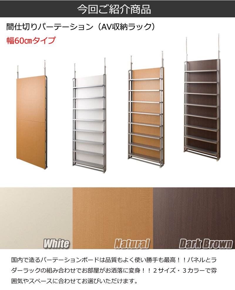 突っ張り間仕切りパーテーション 幅60 AV収納 | CDラック DVDラック コミックラック つっぱり パーティション 間仕切り スクリーン ツッパリ 日本製 国産 [NJ-0127/NJ-0129/NJ-0144]